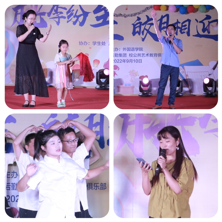 中秋晚会现场的气氛火爆。作为主角的2022级小萌新们活力四射,光芒万丈。古典舞《春三月》火红水袖翻飞,如秋枫落地即刻又朱蝶翩跹,瞬间抓住了大家的注意力;《小幸运》、《在你的身边》、《时间煮雨》、《一笑倾城》等热门歌曲演唱丰富多彩、流行律动;小品《反诈修炼手册》中演员方言荟萃,古文经典信手拈来,运用自如,引得大家捧腹大笑;街舞和爵士舞串烧燃爆全场;诗歌朗诵《万世师表》表达了老师的尊重和感恩……同学们都沉浸在过节的气氛和精彩的表演中,台上灯光闪耀,台下掌声不断!