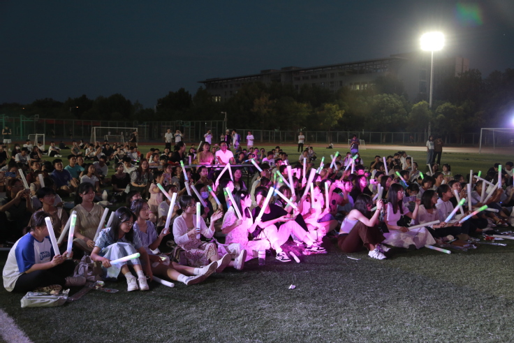 本网讯 一轮秋影转金波,飞镜又重磨。9月10日晚,为喜迎中秋佳节和教师节,陪伴2022级小萌新们度过第一个远离家乡的团圆之夜,感受来自学校的温暖,外国语学院在南区操场上举办开学第一课暨新生中秋晚会。学院党政、全体辅导员和新生们欢聚一堂,伴着月光月色,畅谈大学时光,欢度中秋佳节。舞台正对一轮圆月,同学们围坐在操场中间,欢声笑语回荡在校园中。