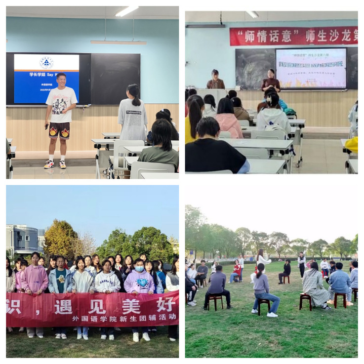为进一步打开心扉、对话共情,学院广泛开展“经验交流”活动,切实发挥专业教师和高年级学长学姐榜样引导作用,在面对面互动、心与心交流过程中,“大手牵小手”,互助共成长。学院举办学长学姐say hello新生适应性教育活动,让学长学姐讲述自己的学习历程,学习经验,为迷茫的同学们指点迷津。组织开展“师情话意”师生沙龙,11月2日,外国语学院特邀大学生心理健康教育中心吉晓青老师为学院学生干部开展心理健康科普讲座,学生代表到场聆听讲座。迄今为止,“师情话意”师生沙龙已经办了八期。开展“感恩母亲相伴,悦享美好时光”三行情诗活动:结合英语专业特色,帮助同学们表达对母亲的感恩,留给妈妈一份温柔和浪漫。