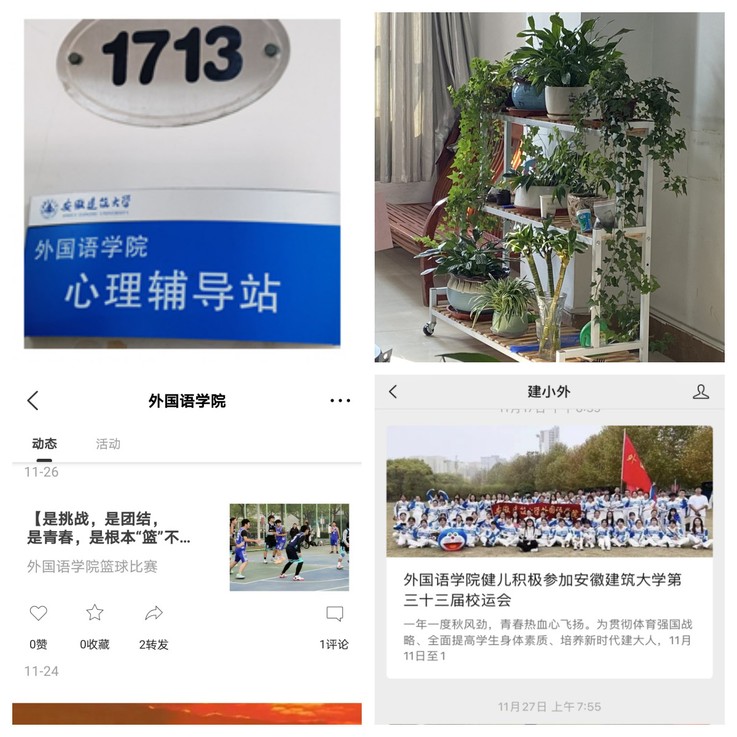 学院心理辅导站配有完备的辅导员工作队伍,设有线上、线下两大工作阵地。线下阵地位于主教楼七楼心灵驿站,环境优美,布置温馨,为师生提供交流倾诉的场所;线上阵地包括主平台微信、官方QQ和微信公众号、网站等,活跃度强,参与度高,服务于学院相关活动的开展。