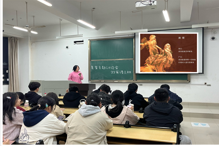 团日活动上,班级团支书从广义和狭义上向同学们解释了美育的含义,让同学们有了对美育的基础性认识。从梵高的画作“向日葵”与“星空”,到贝多芬的曲子。经过美术与音乐的共同洗礼,让同学们对美有了更深的一层感受与见解。拥抱艺术之美 感受古今美之不同,可以使人生的沉淀得更深。从子曰:“兴于诗,立于礼,成于乐”到梦一梦李清照的半世桃花,见一见苏轼的竹杖芒鞋,从婉约豪放到青墙瓦黛,在烟柳花月候一场春华迟来。不仅能感受到古与今的美之不同,更能提升个人品味。感悟美,汲取美,以万象之美,育人生丹青,追寻“诗与远方”。