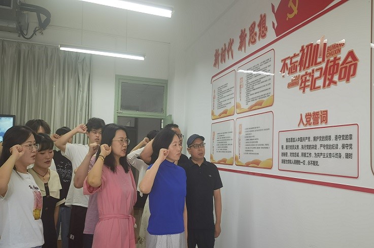 本网讯 为进一步深入开展学习贯彻习近平新时代中国特色社会主义思想主题教育,贯彻落实党的二十大精神,在中国共产党建党102周年来临之际,6月30日,外国语学院党总支在主教楼1714会议室举行“迎七一,重温入党誓词”宣誓活动。