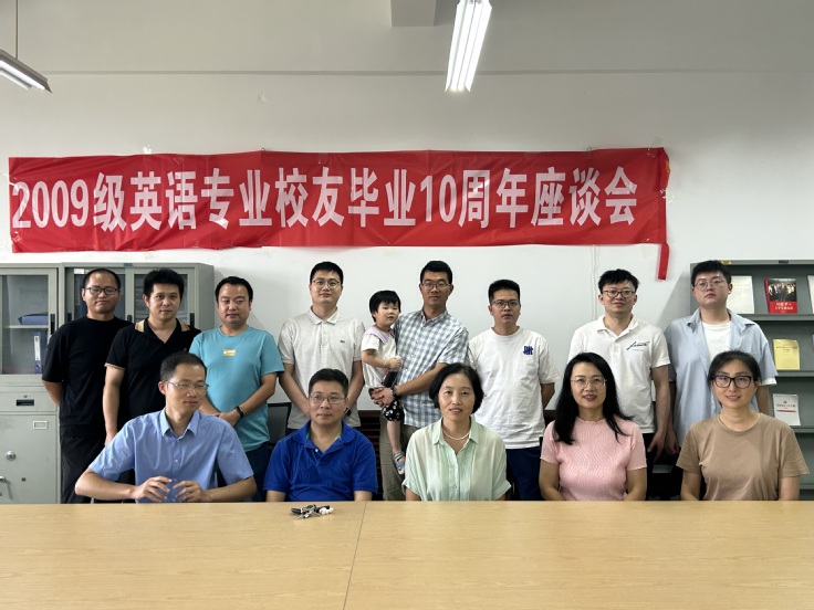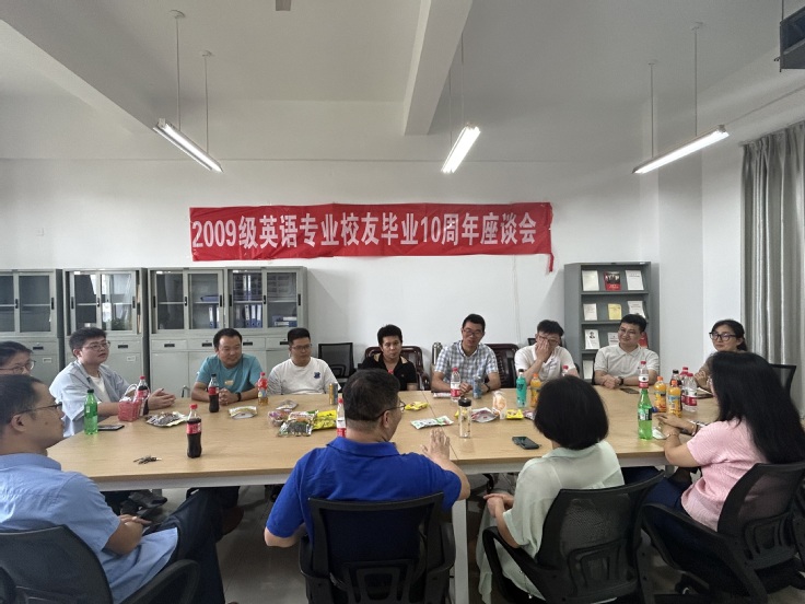 本网讯 8月19日,外国语学院2009级英语专业校友毕业10周年座谈会在学院会议室1714顺利召开,学院党政领导班子、辅导员代表和返校校友参加了座谈会。