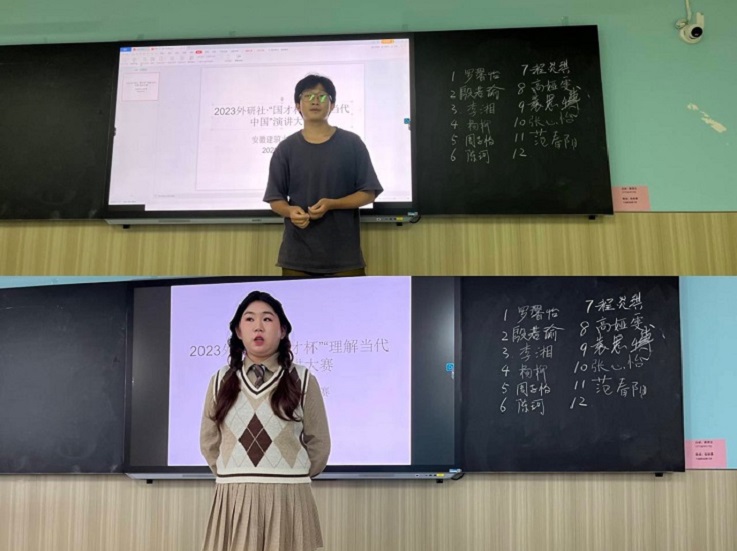 比赛现场由两位外国语学院英语老师担任评委。围绕本次赛题,The Chinese Path to Modernization(中国式现代化),选手依次上场进行演讲,时长为3分钟。评委老师根据内容、口语表达、仪态三个部分进行严格评分。每位选手准备充分,上台后能较为流利自如的表达自己演讲稿的内容,部分选手能与台下评委老师、观众进行适当的互动,反响较好。进入复赛的选手都拥有一定的语言交际功底,并在之后的即兴提问环节展现出了较好的思辨沟通能力。在每位选手演讲过程中,台下观众聚神聆听,感受演讲与口才的魅力,同时也感叹于中国式现代化所取得的伟大成就。每位同学演讲结束后,台下观众会给予热烈的掌声与鼓励。两位评委老师也进行了公平公正的打分和评比。最终评选出一等奖两名、二等奖四名、三等奖五名。优胜者将代表我校参加将于11月初举行的安徽省赛区比赛。(作者:王喆 审稿:余鸿)