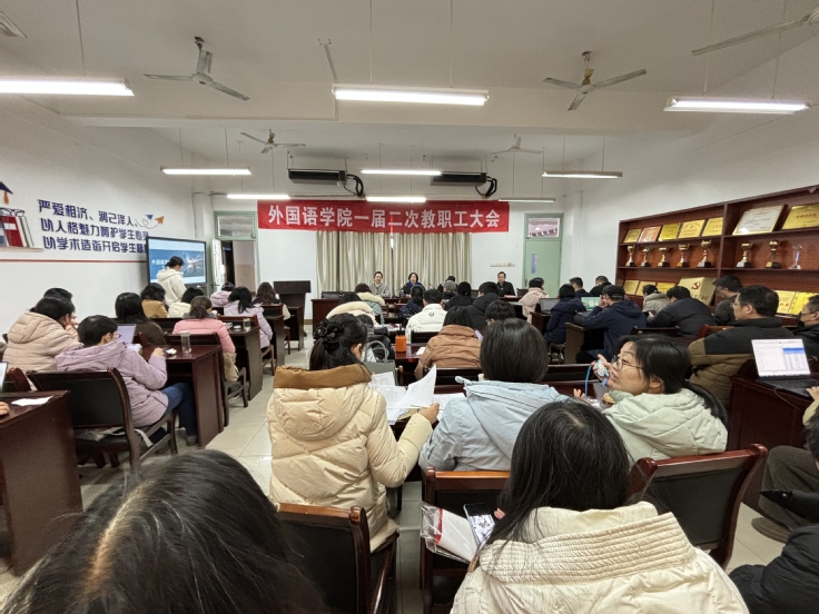 本网讯 1月9日下午,外国语学院一届二次教职工大会在学院1712会议室胜利召开。学院全体教职工参加大会,共商学院发展大计。