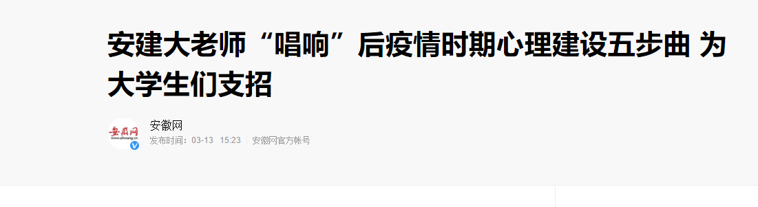 编者按:我校公管学院副教授郑敏制作视频《后疫情时期的心理建设》,专门介绍了心理建设五步曲,帮助学生提升心理健康素养,受到学生们的普遍热捧。3月13日,安徽网对此进行了报道。