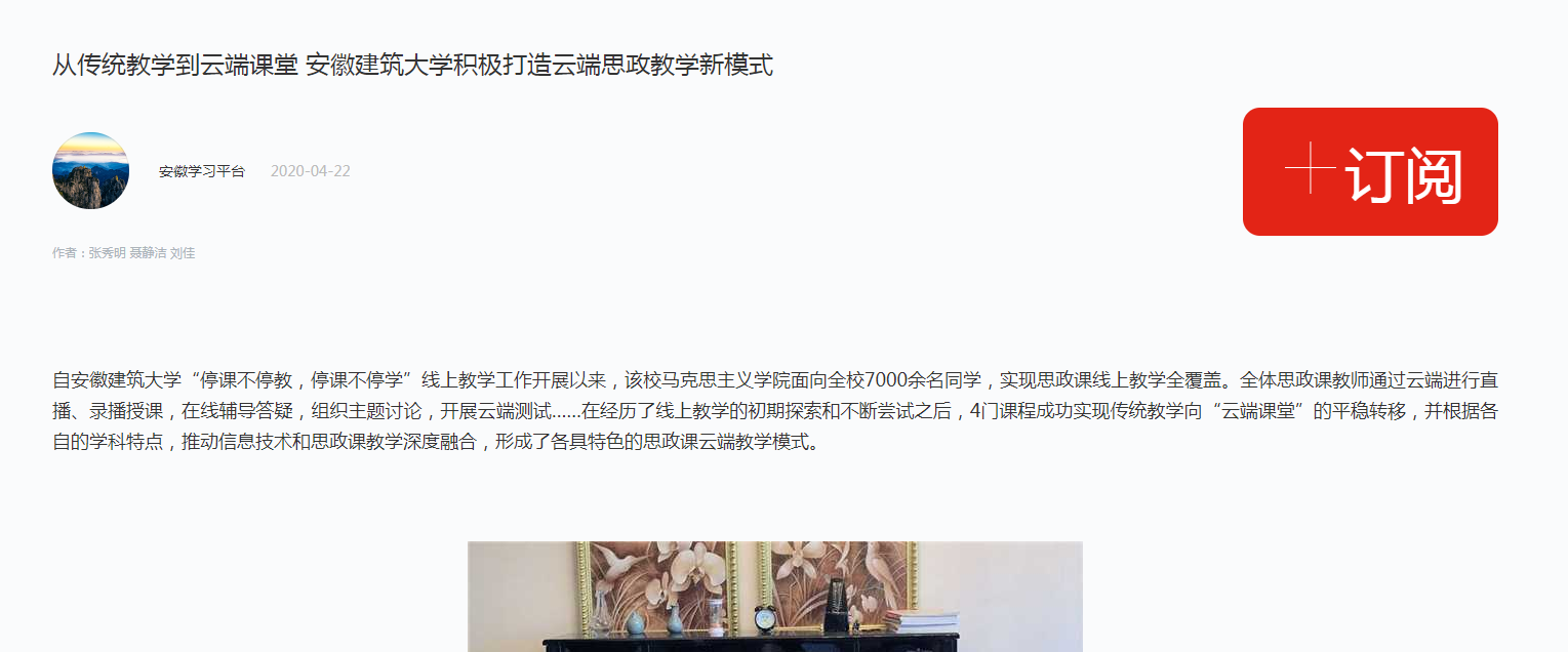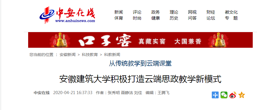 编者按:疫情期间,我校马克思主义学院面向全校7000余名学生,实现思政课线上教学全覆盖,积极打造云端思政教学新模式。4月21日,中安在线对此进行了报道,4月22日,学习强国平台进行了转载推介。