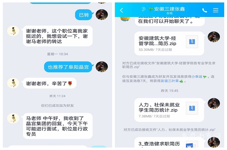 作为学校毕业生和用人单位双向沟通的桥梁,为确保就业信息畅通传递,打通就业“最后一公里”,学校通过专用QQ群与求职毕业生搭建对接平台,摸清当前求职毕业生就业意向,及时发布用人单位招聘信息。结合目前毕业生的求职意愿,学校安排专人积极主动联系用人单位,深入挖掘优质企业招聘岗位需求,推送求职毕业生简历,及时跟踪就业进展情况。