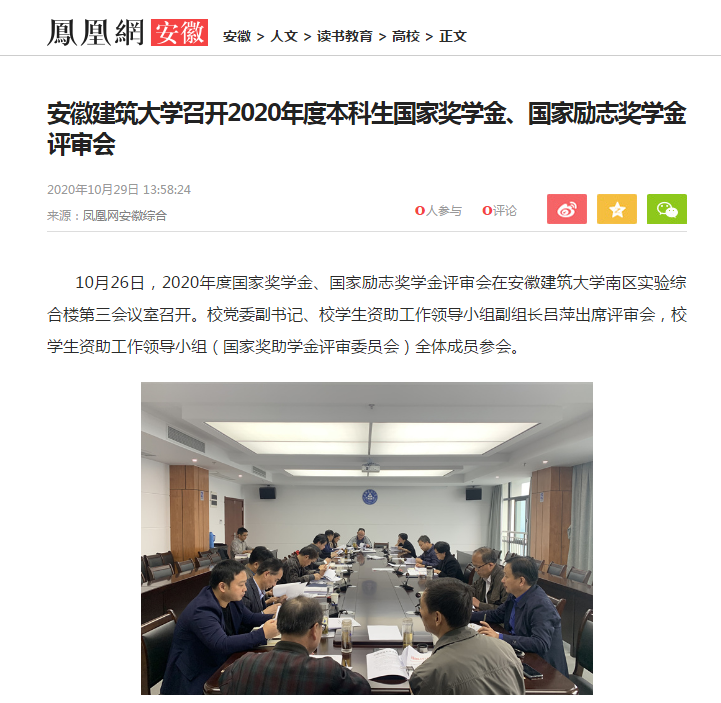 编者按:10月26日,2020年度国家奖学金、国家励志奖学金评审会在ku游官方南区实验综合楼第三会议室召开。校党委副书记、校学生资助工作领导小组副组长吕萍出席评审会,10月29日,凤凰网安徽对此进行了报道。