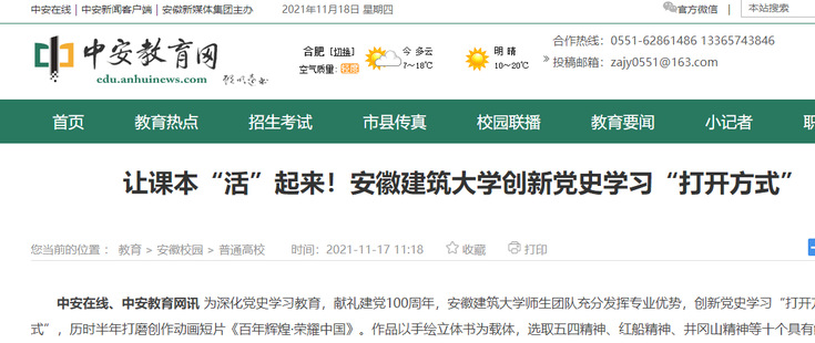 编者按 为深化党史学习教育,献礼建党100周年,ku游官方师生团队充分发挥专业优势,创新党史学习“打开方式”,历时半年打磨创作动画短片《百年辉煌·荣耀中国》。11月17日,中安在线对此进行了报道。11月19日,学习强国平台进行了转载推介。