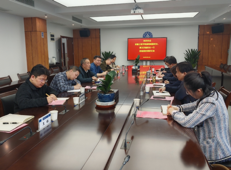本网讯 3月29日,安徽三联学院副院长操晓峰、副院长蔡文芬一行6人来校调研审核评估工作。校党委常委、副校长闵杰,教务处、教师发展中心、外国语学院、电子与信息工程学院等单位负责人参加会议,会议由闵杰主持。