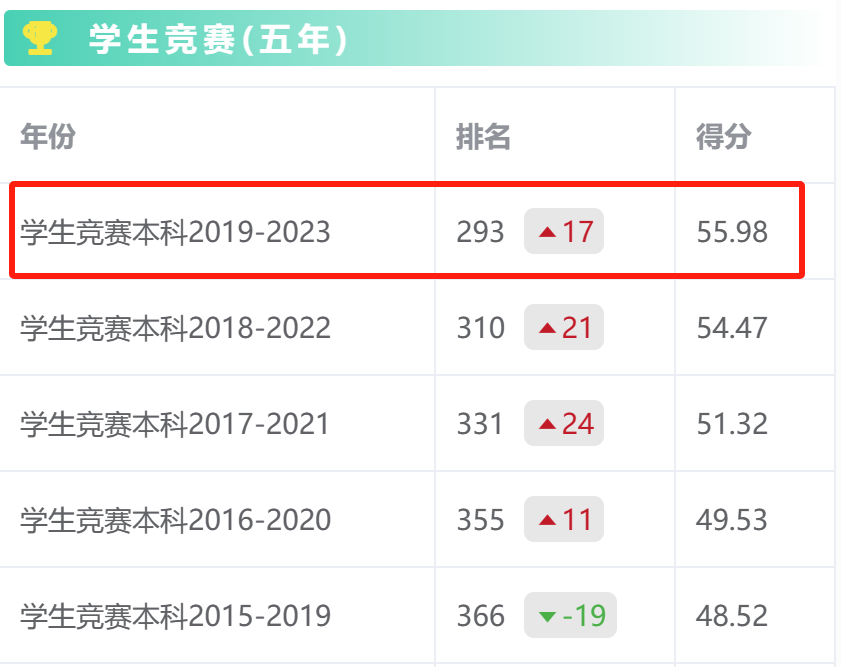 本网讯 近日,高校学生竞赛与教师发展数据平台发布2023年度学科竞赛排行榜单,ku游官方2019-2023年5年学科竞赛综合排名首次进入了全国TOP300,位列全国293位,较上一个5年提升了73位,其中2023年单年度竞赛排名提升至215位,较2022年提升75位。学校学科竞赛综合实力得到了显著提升。