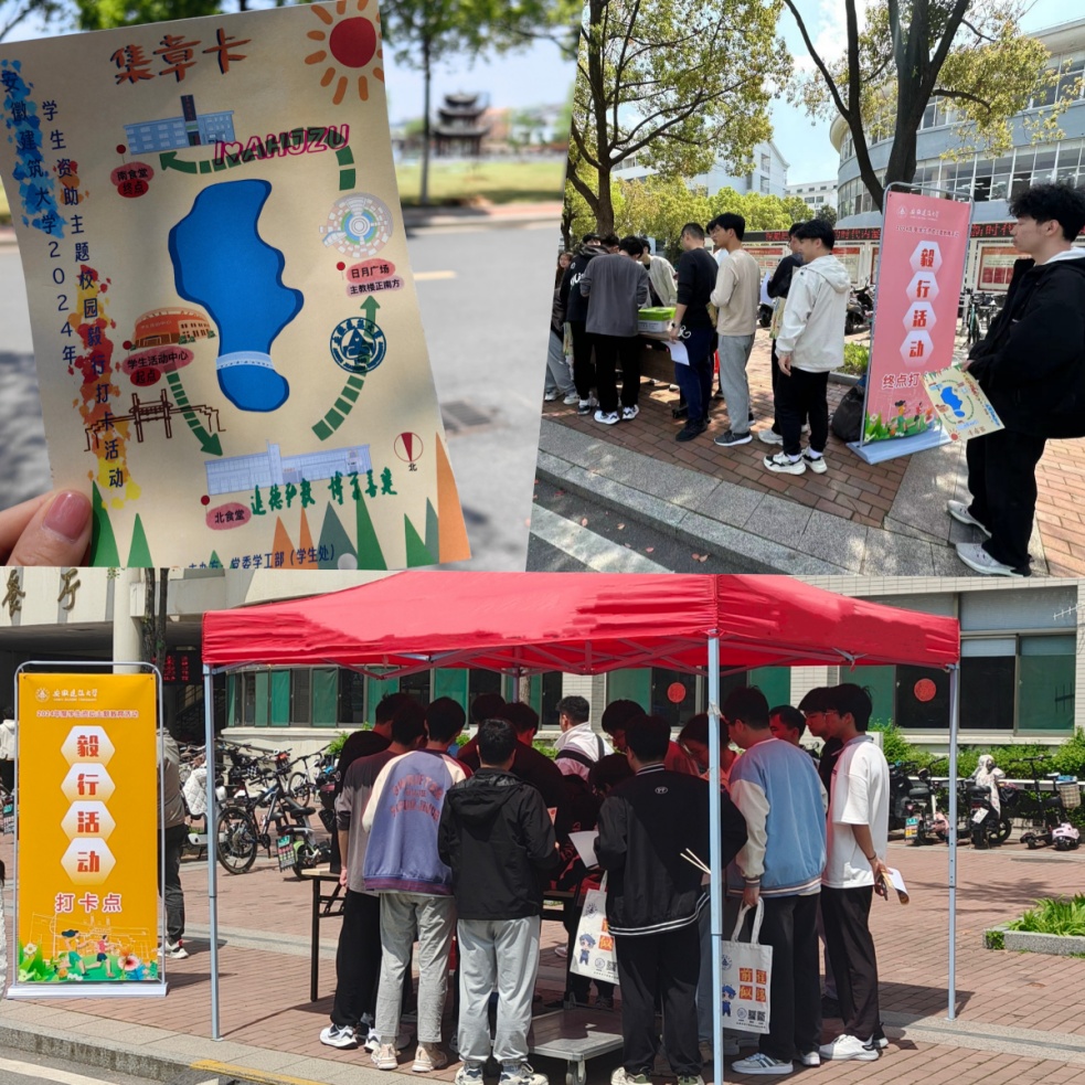 本次毅行全程共设置了4个打卡点,同学们在南校区大学生活动中心签到出发,途经北食堂、日月广场至南食堂结束。为了增添活动的趣味性,学生处依据学校特色分别设置了“徽弘门”“建大校徽”“建大校训”“我爱建大”四枚打卡印章,充分让同学们体验到DIY专属集章卡的乐趣,还在环绕易海徒步过程中欣赏校园春色,美哉乐哉。