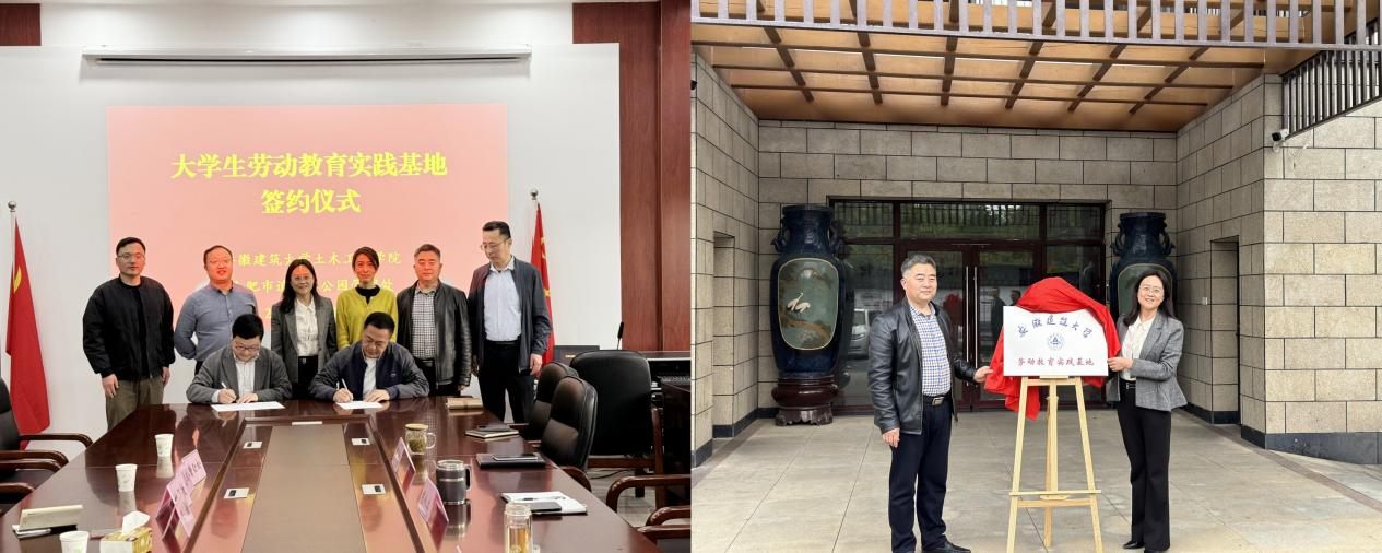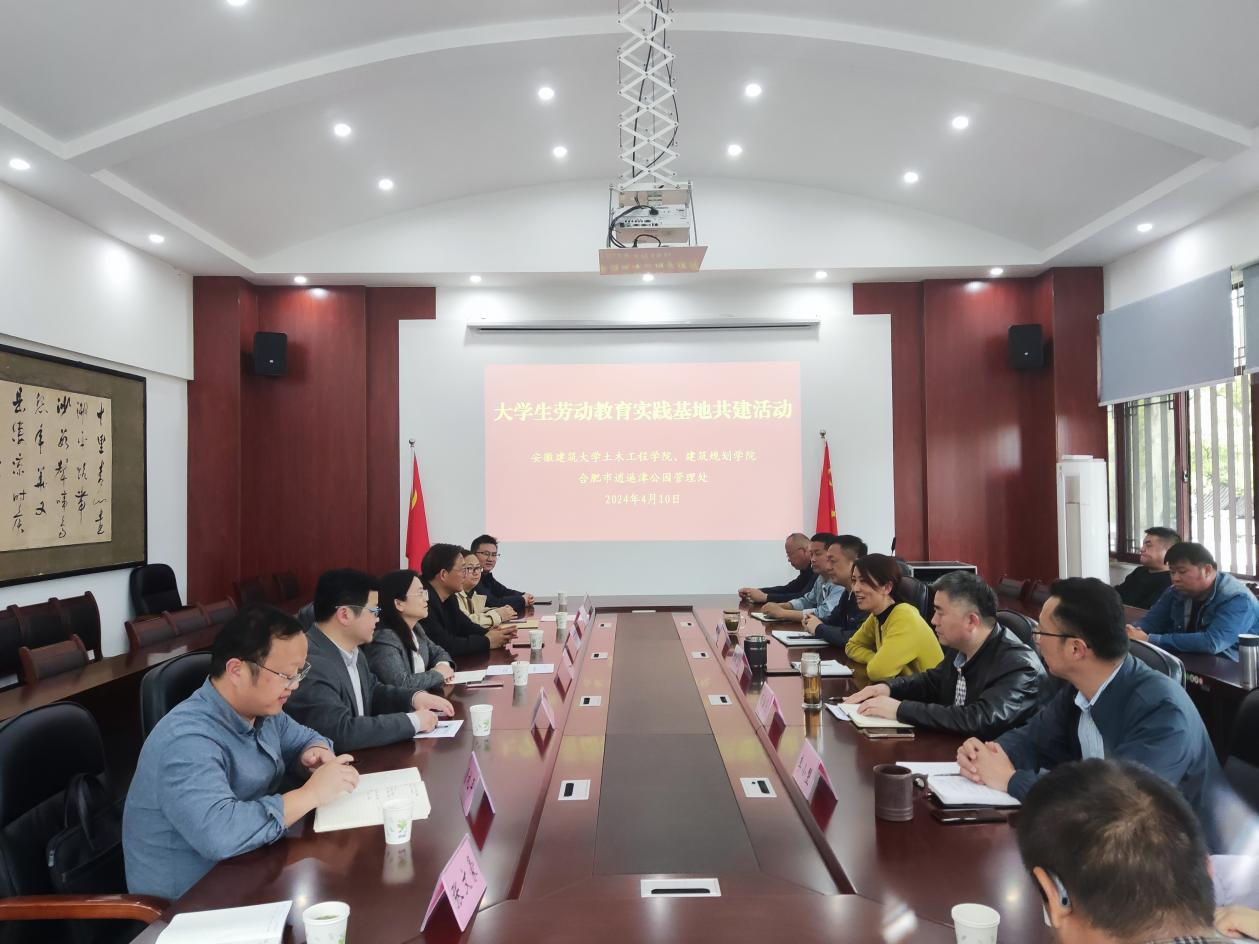 启动会上,胡从容对土木工程学院一行的到来表示热烈欢迎,对共建大学生劳动教育实践基地充满期待,希望通过共建优势互补、合作共赢,推动管理处工作高质量发展。朱金亮介绍了管理处的基本情况和历史发展,逍遥津公园作为合肥环城公园“翡翠项链”上的璀璨明珠,是合肥城市文化的重要名片之一。王媛对管理处提供优质的劳动教育实践平台表示感谢,学生能够在具有丰富历史文化底蕴和优美的自然景观中开展劳动实践,是劳动教育、美育教育、文化修养等多方面的提升发展。施国栋介绍了学校关于劳动教育的的实施方案,通过理论与实践相结合培养大学生劳动意识,树立劳动观念,强化劳动自觉与责任感,逍遥津公园作为开放共享式的城市公园是开展劳动教育实践的理想平台。会上双方进行了签约和揭牌仪式。