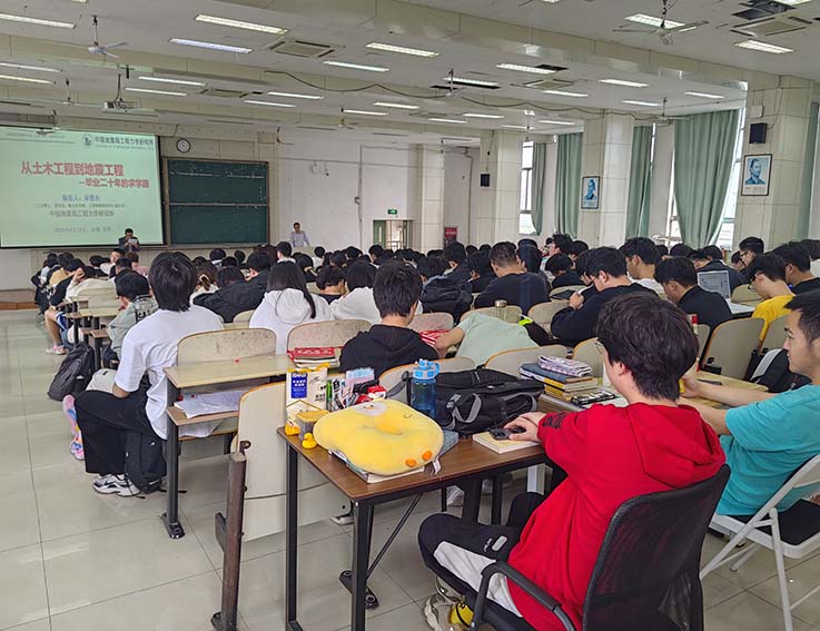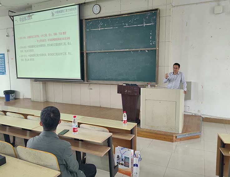 宋晋东以自己毕业二十年的成长经历为主线,围绕迷茫-转折-上升-突破各个阶段心得体会以及从土木工程到地震工程的研究转向向学弟学妹们做了深情分享。并介绍了所在工作单位中国地震局工程力学研究所在国家民生发展领域的研究情况,展现了“国家需要则是研究方向”的家国情怀。最后,宋晋东向学弟学妹们提出三点感悟:一是要好好学习,今天的学习是为以后学习工作奠定扎实基础;二是学海无涯,成长道路上需要保持终身学习、持续学习的精神;三是保持良好心态,认真对待生活中的每件事。