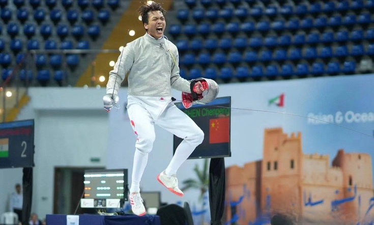 巴黎奥运会击剑项目亚大区资格赛男子佩剑个人赛中,在经历6轮小组循环赛后,沈晨鹏总结经验,调整状态,在1/4决赛中15比12鏖战哈萨克斯坦选手萨尔吉斯延,成功晋级半决赛;在半决赛中15比6轻松战胜中国香港选手罗浩天;最终与印度选手SINGH Karan Singh会师决赛,以15比2的大比分夺得冠军,获得珍贵的巴黎奥运会个人参赛资格。