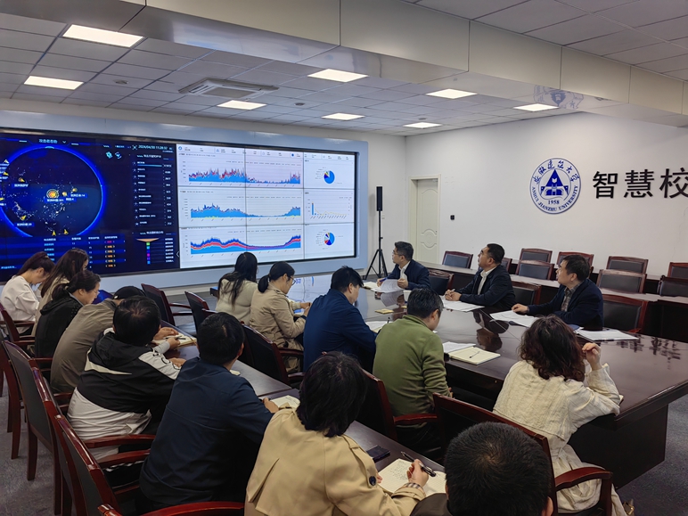 蔡国军对信息网络中心的工作给予肯定,并强调网络安全无小事,要做好日常网络安全监测,配合好上级主管部门做好重要时间节点的网络信息安全保障工作;要时刻关注大事、要事,做好学校招生考试、网上阅卷等重要任务的技术保障工作;加强智慧教室的日常运行管理,提升校园信息化服务水平。(文/图:郭玉涵、李超;审核:章曙光)