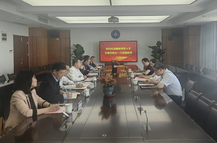 本网讯 5月7日,赣南师范大学党委常委、副校长甘雅芬一行3人来校调研交流。学校在紫云路校区徽风楼21楼第二会议室召开座谈会,校党委常委、副校长蔡国军主持会议,组织部、宣传部、科技处、发展规划处等单位负责人参加会议。