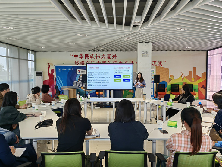 本期沙龙召集人是环能学院专职辅导员韩三青,她以《构建“4+1”多方联动机制,精准助力学生成长成才——辅导员心理工作案例分享》为题,和在场的辅导员分享了自己在大学生心理健康教育与危机处理方面的经验做法。她介绍了当前大学生心理健康现状及常见的心理问题,通过具体案例,详细阐述了如何利用“4+1”多方联动机制做好大学生心理健康教育及危机干预工作。