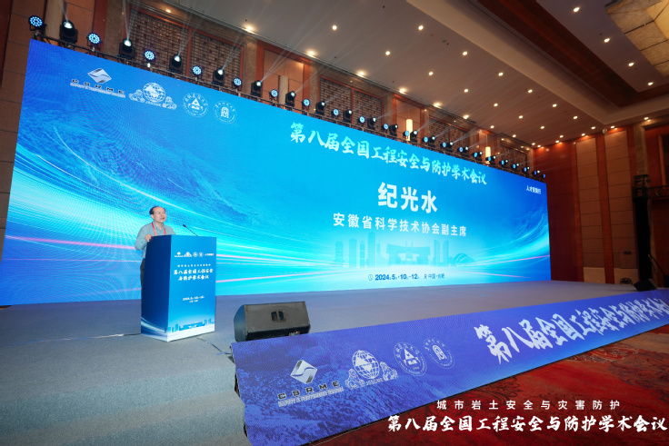 5月11日上午,大会开幕式环节ku游官方党委常委、副校长蔡国军教授主持,ku游官方党委书记马文革先生致欢迎辞、安徽省科学技术协会纪光水副主席、中国工程院院士朱合华院士、中国岩石力学与工程学会工程安全与防护分会理事长戚承志教授分别致辞。