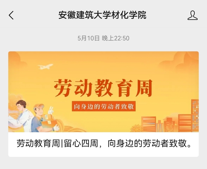 全面宣传,体会劳动精神。要德智体美劳全面发展,不能忽视“劳”的作用,材化学院高度重视劳动教育,充分挖掘内部劳动教育资源,认真研究制定活动方案,以主题党日活动、主题班会、微信公众平台等为载体,通过理论学习、交流心得等多种形式,组织学习《中共安徽省委安徽省人民政府关于全面加强新时代大中小学劳动教育的实施意见》,宣传劳动榜样和身边劳动者事迹,教育引导学生们深刻认识劳动课程的重要性,培养学生正确的劳动价值观和良好的劳动品质,进一步深化学生对劳动精神的理解和认识,更加懂劳动、会劳动、爱劳动,自觉传承与弘扬劳动精神。