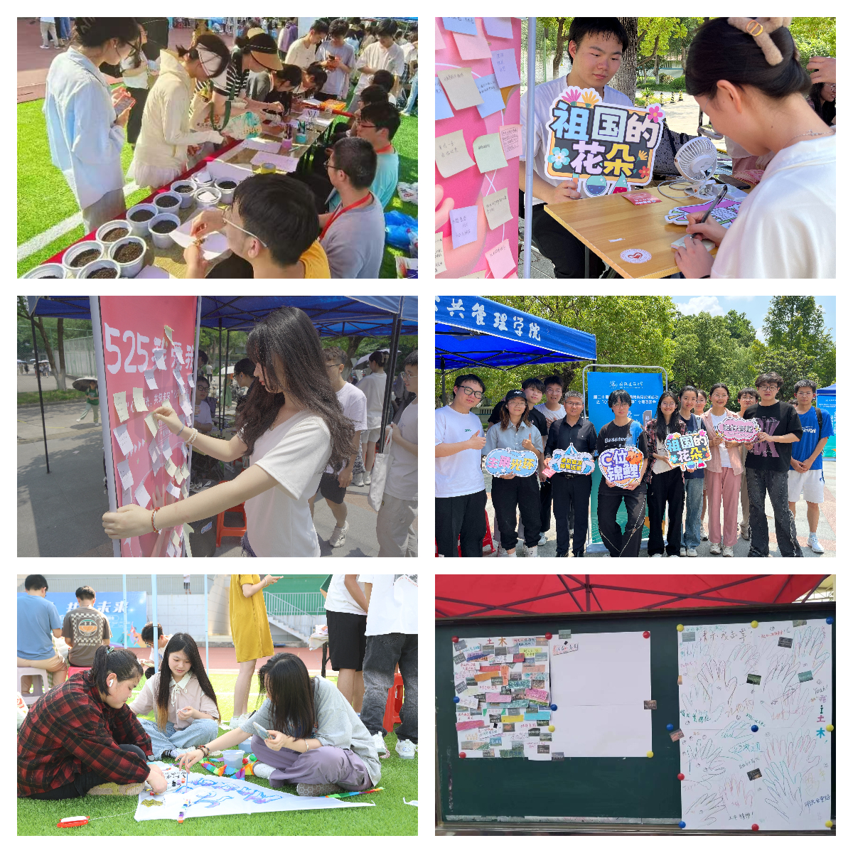 “心理能量赋能区”安排了绿植养护活动、爱自己行动集章打卡活动、梦想拼贴画活动和放飞梦想彩绘风筝活动。绿植养护活动中,同学们通过园艺舒缓身心,探寻生命发展历程,感悟生命的美好;爱自己行动集章打卡,同学们通过“撕标签”活动、知识闯关、微笑打卡等环节,认识自我,悦纳自我;梦想拼贴画活动中,同学们将梦想通过具象化的方式表达;放飞梦想彩绘风筝活动,参与者拥抱梦想,放飞梦想,共筑未来。