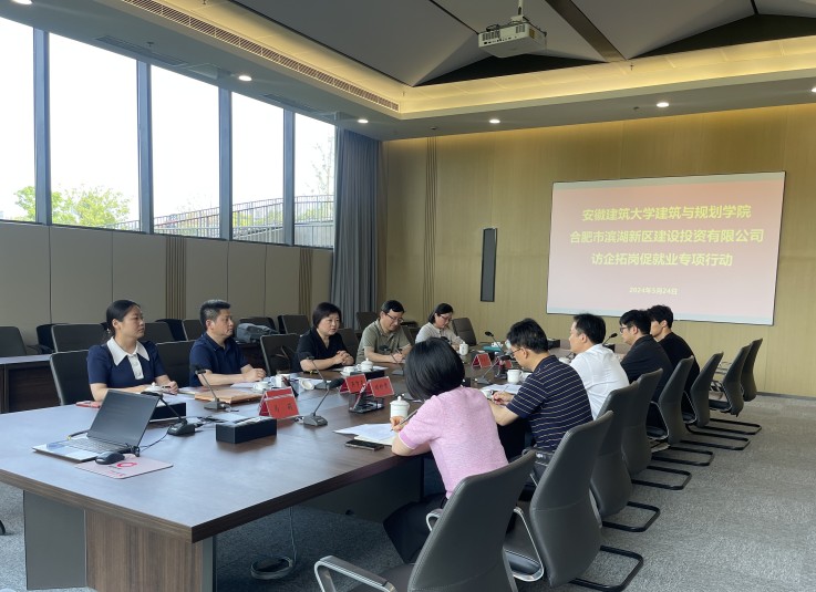 本网讯 为贯彻落实教育部、省教育厅关于访企拓岗促就业专项行动工作部署和要求,深入了解企业需求,挖掘实习就业岗位,为毕业生争取更多就业机会,促进毕业生高质量充分就业。2024年5月25日,校党委常委、副校长李早率建规学院负责人、教师代表、毕业班辅导员赴合肥市滨湖新区建设投资有限公司,开展“访企拓岗”促就业专项行动。