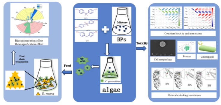 近年来双酚类化合物(BPs)在水环境中频繁被检出,且具有持久性污染物的特点,易通过食物链途径进入不同营养级生物体内,很可能对生物体乃至人类健康产生巨大的潜在风险。因此,论文研究了三种常见BPs包括双酚A (BPA)、双酚S (BPS)和双酚F (BPF)对绿藻的联合毒性以及食物链效应即生物富集和生物放大效应。结果发现三种BPs对绿藻的联合毒性呈现协同作用,且BPs及其混合物均具有明显的食物链效应,其中BPF具有最大的生物富集和生物放大效应,而混合物的生物放大效应仅次于BPF。