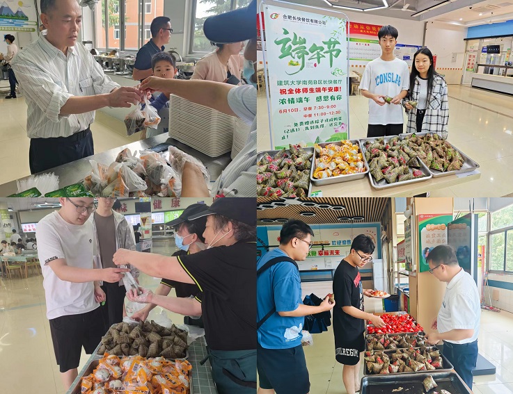 6月7日和10日,学校食堂分别开展全荤菜半价让利活动和免费送粽子、咸鸭蛋活动。各食堂将已经煮熟的粽子和咸鸭蛋,作为节日的温暖和祝福,赠送给广大师生。同学们纷纷品尝着手中美食,分享着节日的喜悦。(作者:程少聪;审稿:陈雷)