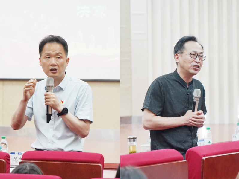 比赛结束后,学院人社系管理学教授范海洲、陈松林依次作指导点评。范海洲教授详细分析了“红色管理”的概念,希望同学们继续深入挖掘红色故事中的管理内涵,将“红色”和“管理”更巧妙地加以融合。陈松林教授重点考量选手们的破题和故事要素,肯定了选手们的精心准备,鼓励同学们在今后的学习和研究过程中将红色故事和管理理念结合起来,做到故事理念化、理念故事化。两位教授的点评让选手们获益匪浅。经过评审,大赛最终决出一等奖1名、二等奖2名、三等奖3名、优秀奖4名,现场评委嘉宾依次为获奖选手颁发荣誉证书。