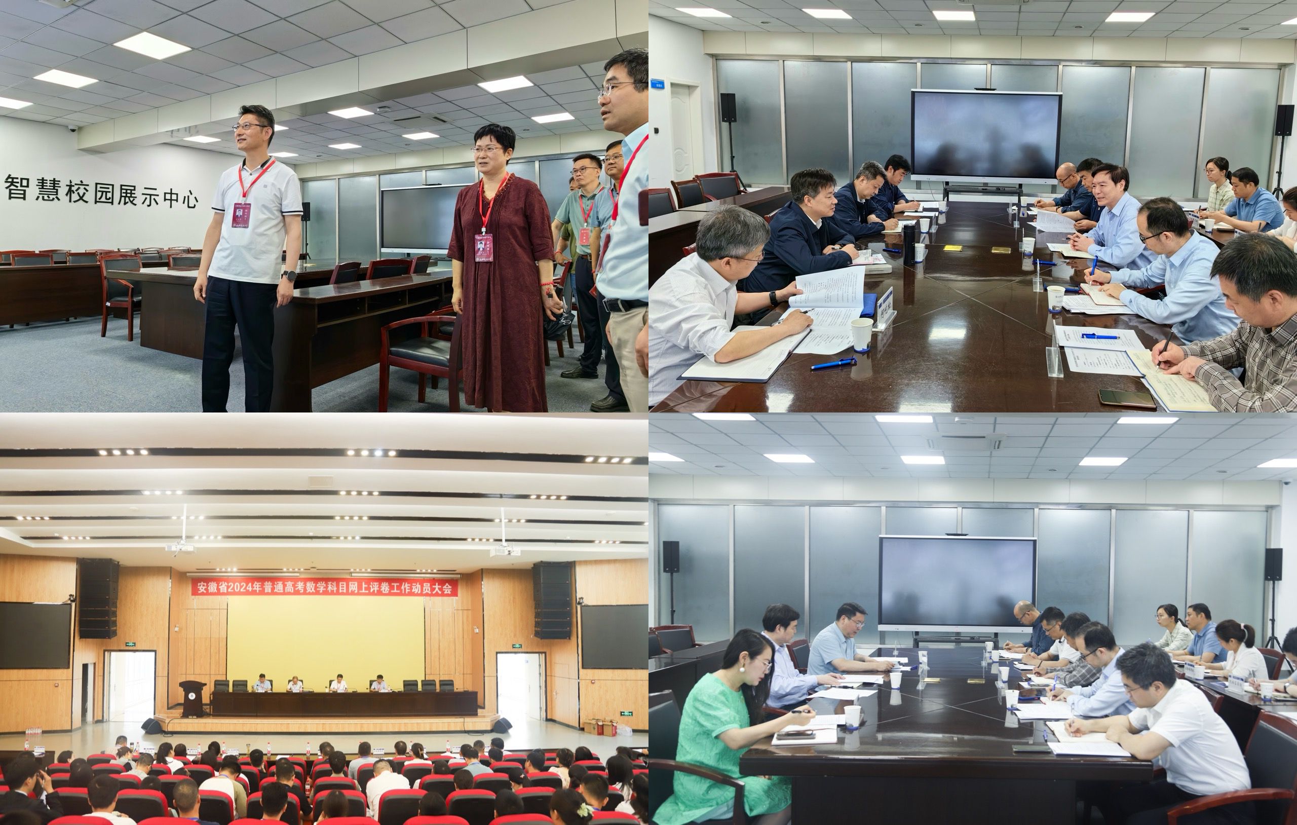 今年是安徽省新高考落地后的首次大考,数学科目考生人数约49.5万,来自全省各地的655名教师经遴选参加评阅。我校网评准备工作自3月份启动以来,学校党政领导高度重视、亲自部署各项组织准备工作,省考试院院长沈滔专程到校检查准备工作。校评卷点在省招委、省委教育工委、省教育厅、省考试院指导下,举行网评工作系列会议,广泛调研、精心制订网评各项工作方案并认真组织实施,加强评卷场所软硬件建设,优化服务保障举措,落实纪律、安全和保密教育,完善闭环管理流程,为评卷教师积极营造舒适、安全、便利的工作和生活环境。校领导马文革、黄显怀、王玉兰、蔡国军多次深入评卷一线,听取各工作组情况报告,与学科专家组、质量监控组人员座谈调研,以视频监控、现场走访等形式巡查评卷机房,对网评准备和正式评卷工作开展多轮检查指导。