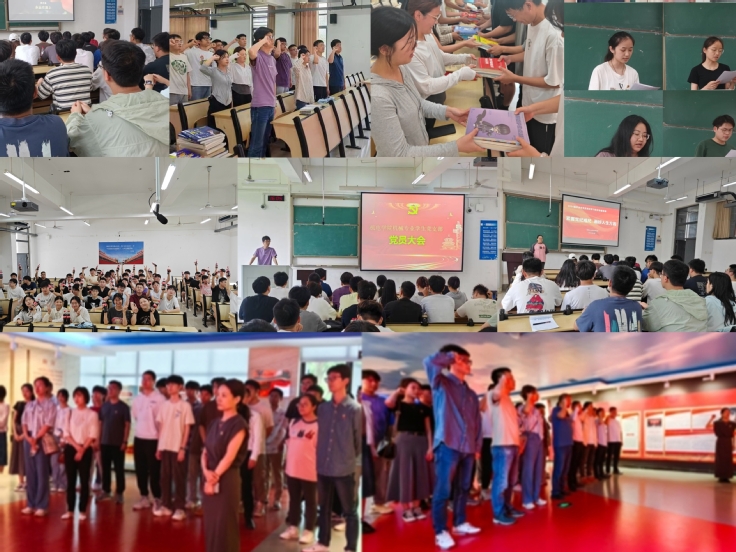 “赓续血脉 党性教育”毕业专题党课。在全党深入开展党纪学习教育之际,机电学院强化“旗帜”、“标杆”意识,根据学生党员突出特点开展毕业生行前教育。一次廉洁教育,强化党性修养;一次互动交流,共话青年成长;一次重温誓词,牢记初心使命;一次图书捐赠,把爱留在建大等等,推动党纪学习教育走深走实,进一步把好学生党员的“出口关”,引导毕业生党员铭记自己作为共产党员的责任和使命。