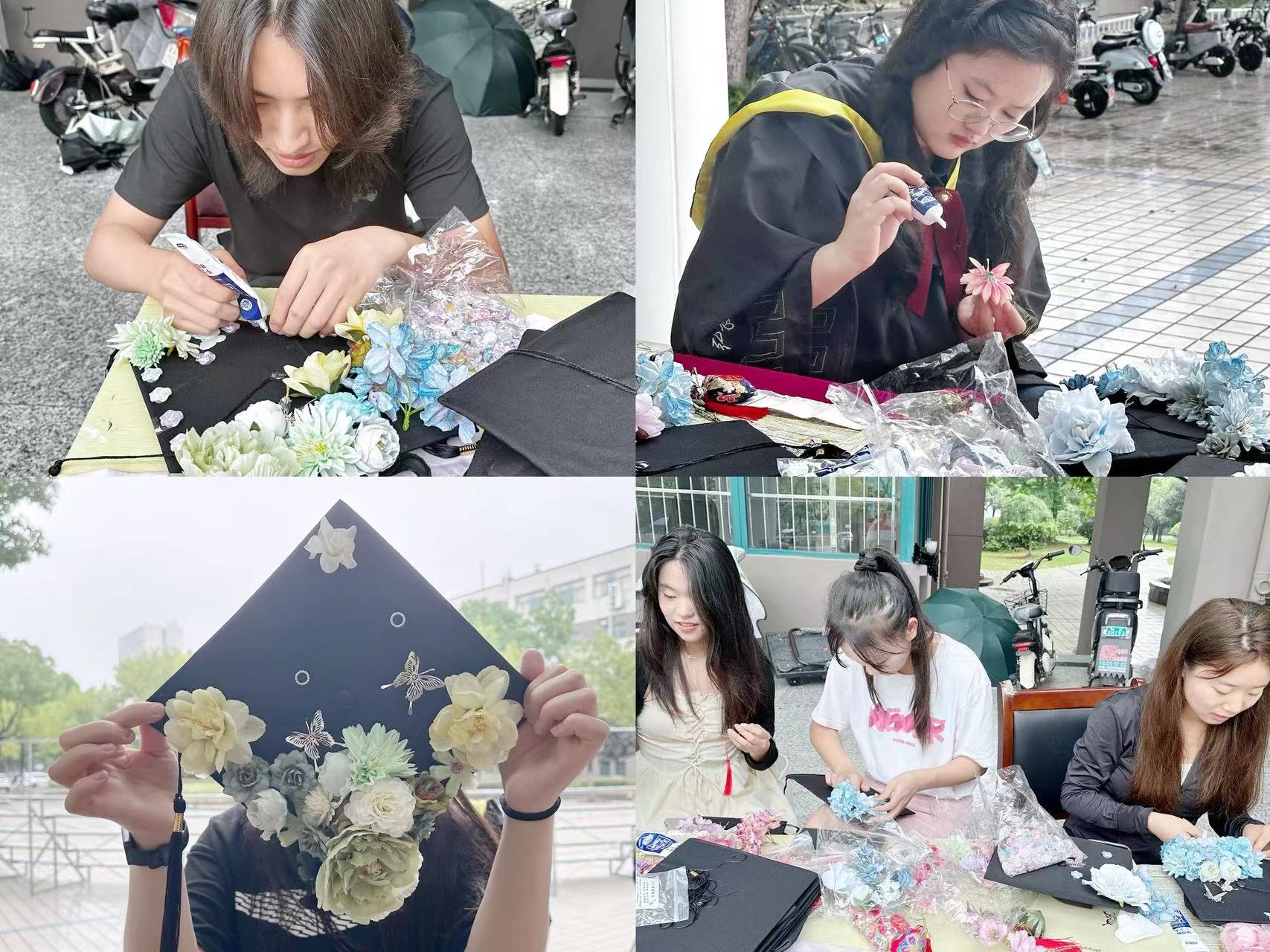 华冠生辉,花锦未央,又是一年离别日,环能学院开展“毕业簪花,一路生花”活动,用簪花为毕业生们的学位帽增添一抹独特的色彩,让美丽不仅仅停留在视觉之上,更深刻地烙印在每个人的心中。每一朵簪花都承载着制作者的情感与心思,它们不仅仅是装饰,更是对毕业时刻的美好寄托,同时也祝愿他们都如同“簪花”学士帽的寓意一样——前程似锦,一路繁华相伴。