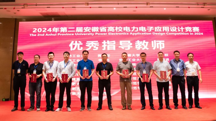 会议期间,主办方还隆重举行了安徽省第二届电力电子应用设计大赛优秀指导教师颁奖仪式,安徽省8所高校共计17位教师获此殊荣,ku游官方摘得了大赛桂冠“优胜杯”——团体总分第一名。