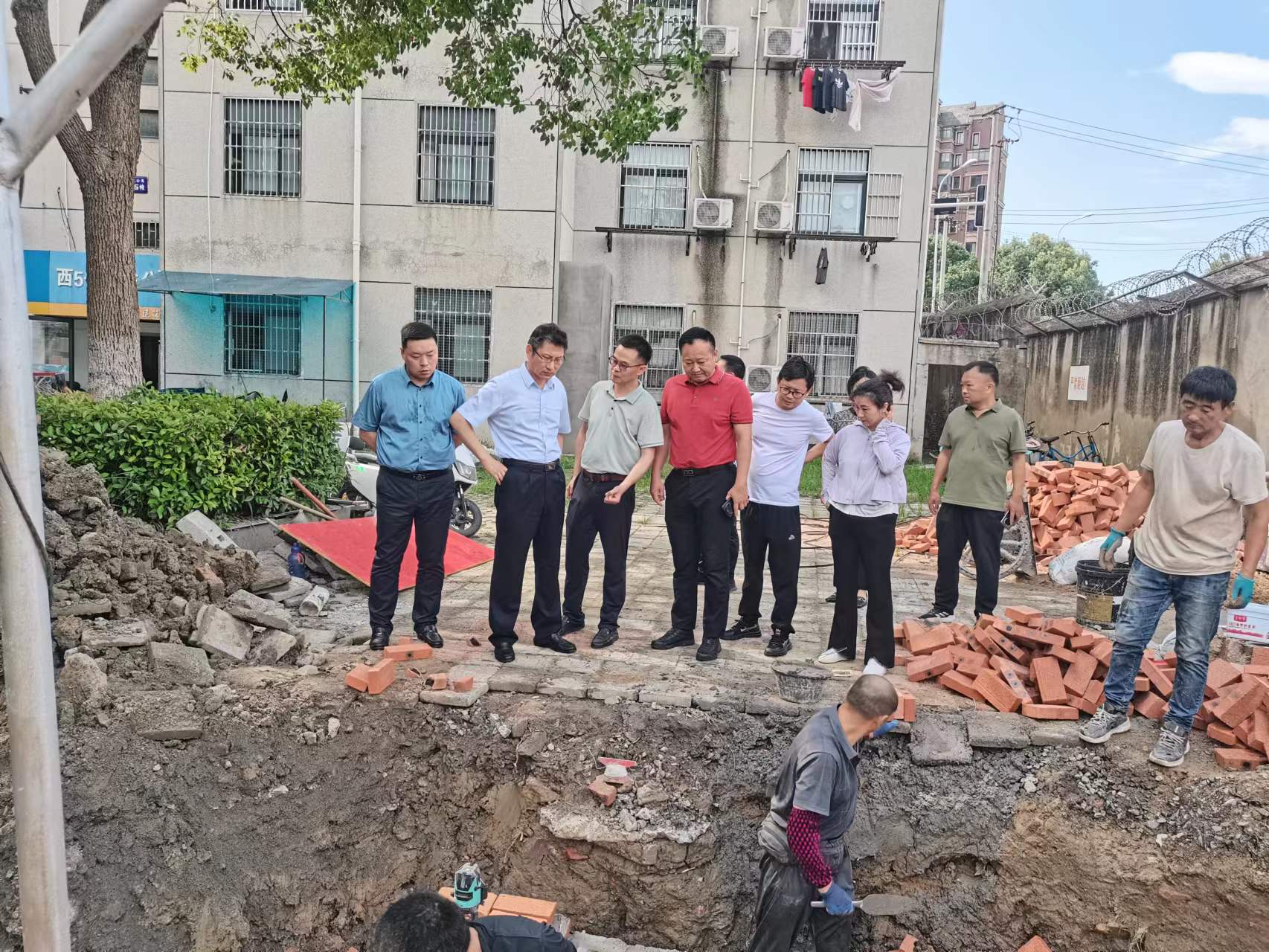 马文革一行对学生宿舍、教职工宿舍、校园基础设施进行了实地查看,了解老旧小区改造工程的准备落实情况。金寨路校区已被纳入包河区2024年老旧小区改造工程,于7月5日正式进场施工,改造涵盖路面硬化摊铺、排水改建、路灯改建、绿化整理、文娱广场、屋面防水、单元楼道粉刷等方面,对校园人居环境改善有极大促进作用。马文革表示,老旧小区改造是校园环境提升的重要举措,各部门要紧密配合,共同把这项惠民工程做实做细,要立足“安全、质量、进度”,高效推进、做好防护,确保施工期间学生、居民安全,做到真正惠及师生、惠及居民。