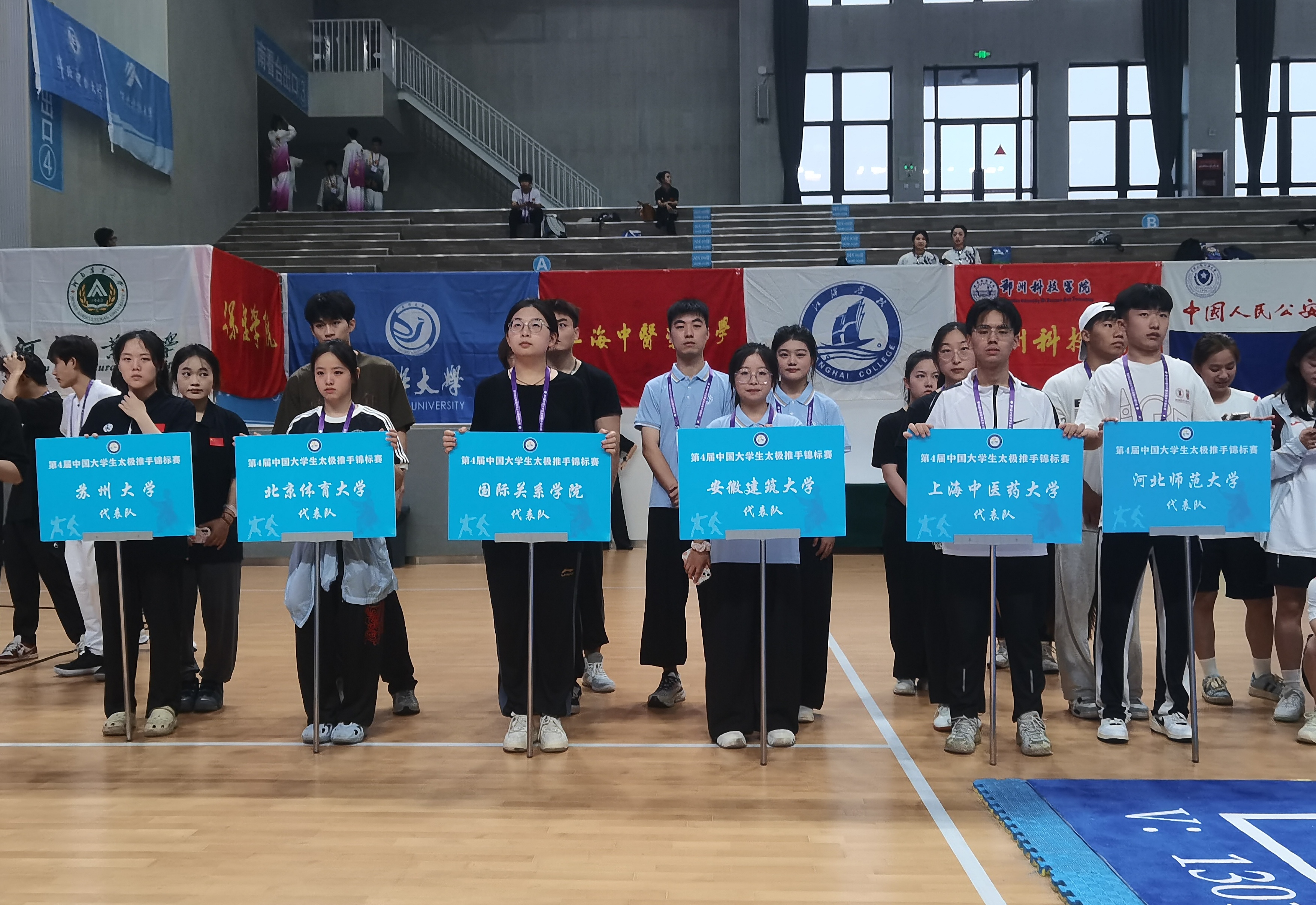 本网讯 7月10日,由教育部中国学生体育联合会主办、南通市体育局协办的2024年第4届中国大学生太极推手锦标赛在江苏南通开赛。本届赛事设太极活步推手(套路形式)、太极类非遗项目及太极推手实战三个比赛项目,吸引了来自西安交通大学、中国人民公安大学、苏州大学等全国66所高校的近500名运动员参赛。