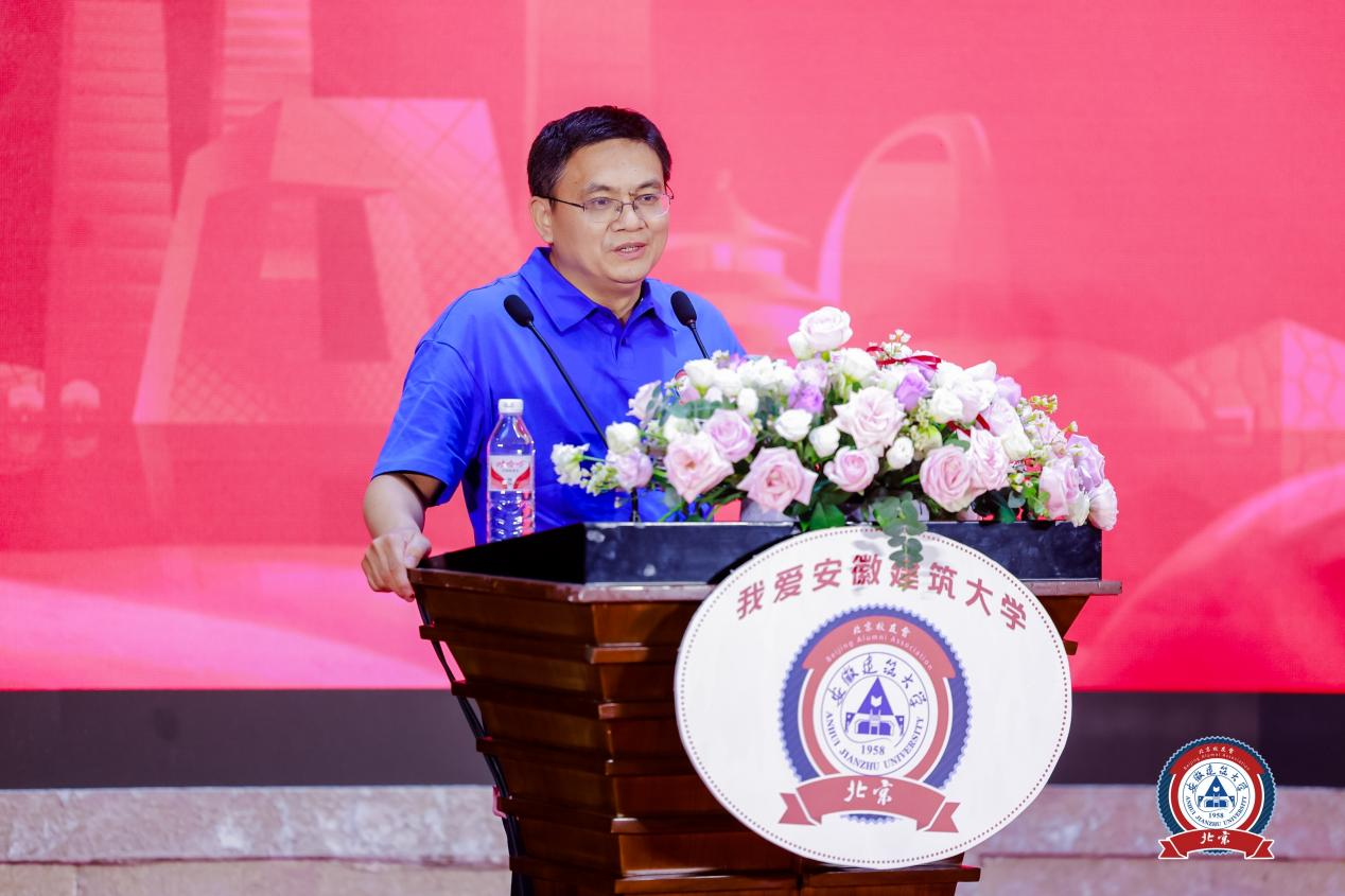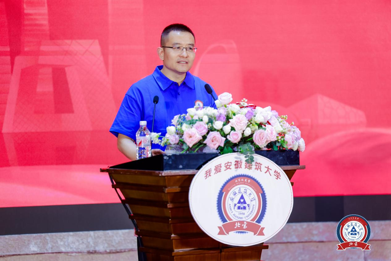北京校友会第三届理事会会长、金融街控股股份有限公司副总经理王志刚校友代表北京校友会对远道而来的各地校友表示欢迎,对母校领导、老师对北京校友会工作的关心、支持表示感谢。他满怀深情的介绍了北京校友会的历史传承和奋斗历程,阐述了北京校友会一贯情牵母校,一贯支持母校教育事业,将借助“英才计划”这一良好载体,团结和凝聚更多北京校友的智慧和力量,助力建大学子成长成才和实现自我价值,助力母校为社会输送更多优秀人才。