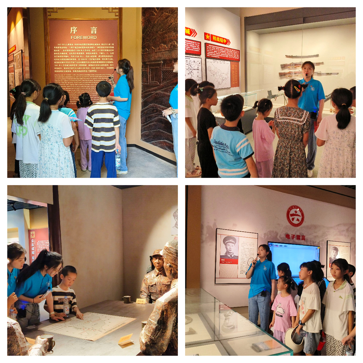 数理学院乡村振兴青年观察家实践团赴高峰乡西港村新四军第四支队司令部旧址开展“红色讲解员”志愿服务活动。“现在映入大家眼帘的是新四军第四支队司令部的作战指挥室和战地沙盘、战士们使用过的武器、战利品、生活用品及发展生产的农具....”伴随着声情并茂的讲解,两位身穿建大蓝、胸口佩戴党员徽章的大学生讲解员活跃在新四军第四支队司令部旧址内,为前来参观学习的20多位中小学生讲述新四军第四支队的发展历史,共同追忆峥嵘岁月。