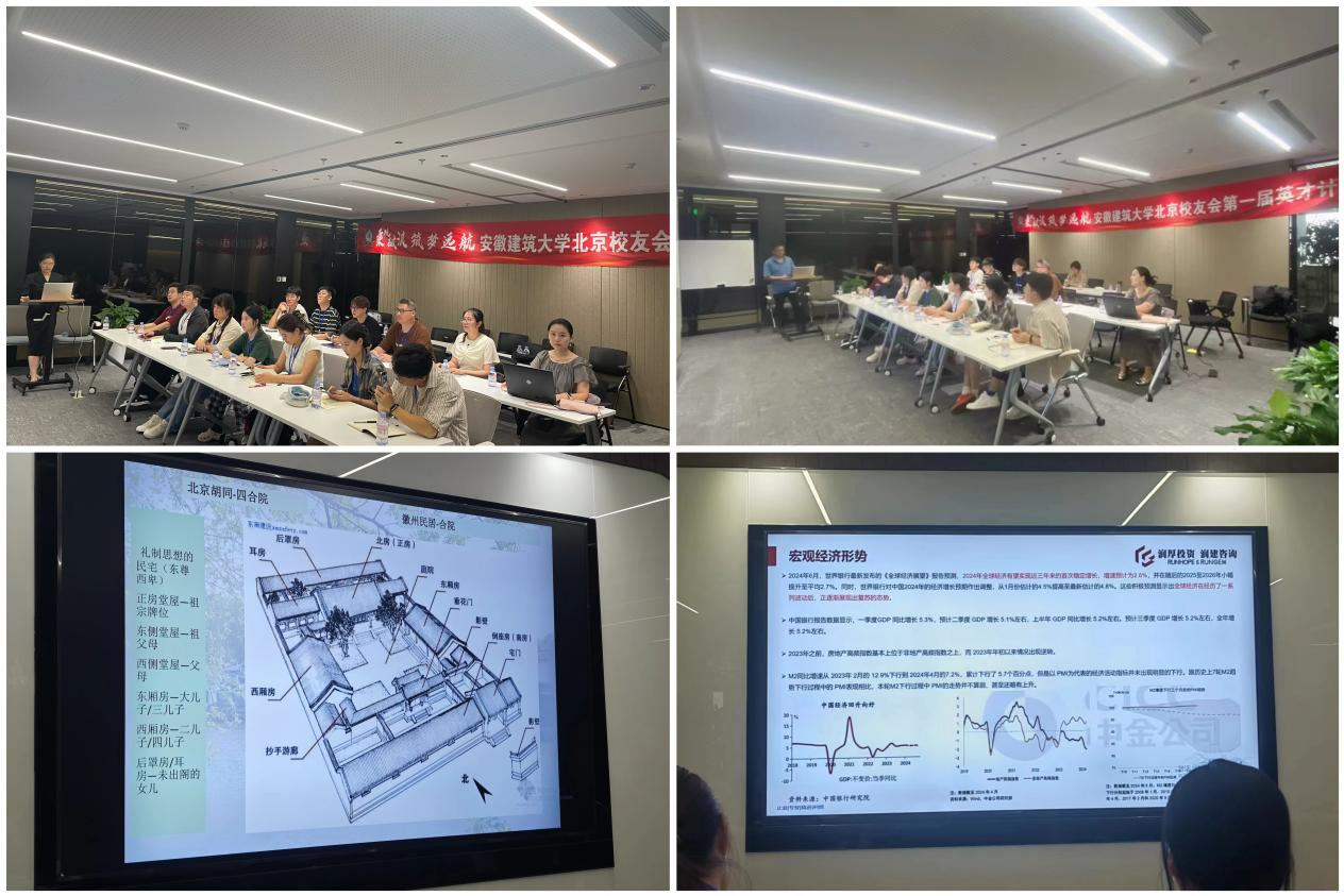 7月14日上午,在京印国际中心会议室,深圳润厚投资有限公司创始合伙人、北京校友会副秘书长程海琼和北方工业大学教授、北京校友会名誉会长王小斌从各自专业领域为大家开展了一场生动的专题讲座,程海琼为大家普及了宏观经济形势分析与行业投资选择,王小斌则以图文并茂的形式带大家了解北京四合院与徽州民居。