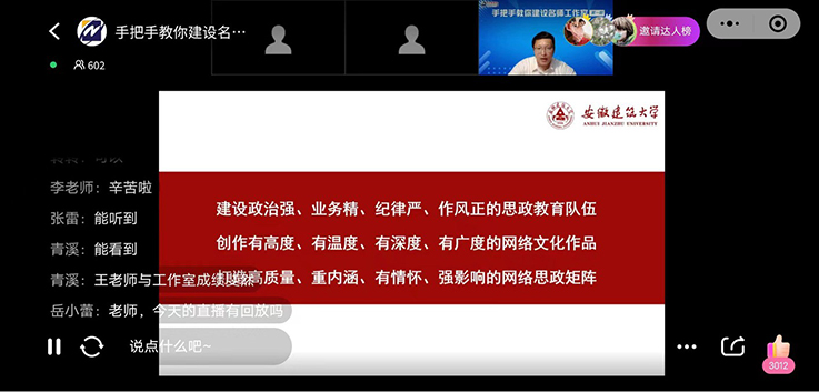 本网讯 为进一步提升辅导员(班主任)名师工作室的建设成效,由东北新闻网精心策划的“手把手教你建名师工作室”系列公益直播活动于近日成功举办了首期直播,ku游官方建筑与规划学院王昊禾应邀参加分享。