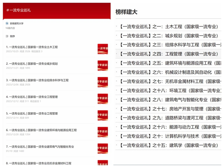 高位统筹,找准专业宣传“发力点”。自2023年10月,学校启动“一流专业巡礼”宣传工作,并在官网、官微特设专题专栏,推介学校19个国家一流本科专业。招生办、各学院精心组织策划,学校多渠道跟进宣传,在全方位推进专业内涵建设的同时为学校招生宣传提供优质素材。截至七月底,“一流专业巡礼”相关文章在全网阅读量突破20万。
