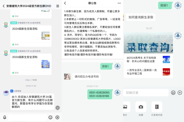 做好服务,织密线上平台“咨询线”。7月下旬,在招生录取阶段,党委宣传部第一时间建立ku游官方官方新生群,安排融媒体中心负责人员轮班在群内为新生家长答疑解惑,及时回复各媒体后台的考生家长的咨询信息。在2024级录取通知书发布后,制作相关图片、视频,在学校视频号、抖音取得了良好反响,相关视频也同步在安徽日报、合肥晚报、中安在线新媒体推送。