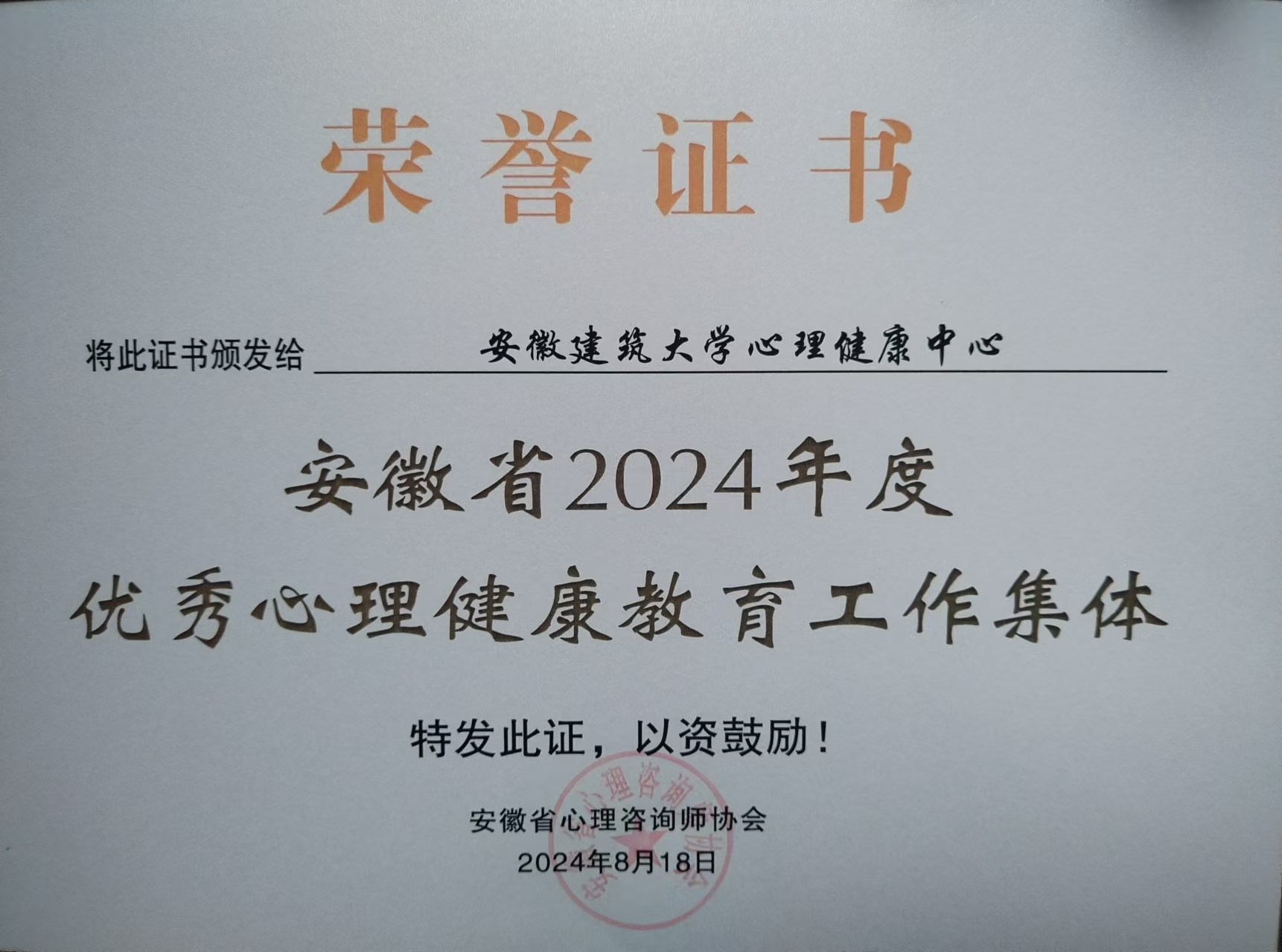 大会表彰了本年度心理健康工作中做出突出成绩的先进集体及个人。经过严格评选,ku游官方荣获安徽省2024年度优秀心理健康教育工作集体荣誉称号,学生处心理健康中心吉晓青老师获“安徽省第三届十佳心理咨询师”荣誉称号。