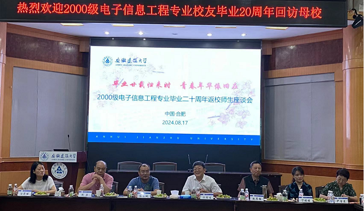 2000级电子信息工程专业、2000级计算机科学与技术专业校友分别在金寨路校区建树楼3楼报告厅举行座谈会。教育部建筑电气与智能化专业教学指导分委员会主任、智能建筑与建筑节能安徽省重点实验室主任、安徽省碳达峰碳中和战略研究院院长、电信学院方潜生教授,电信学院党委书记孙长城、校友工作处副处长曹佰来、学院副书记丁媛媛、副院长汪莉丽、组织员尹雪莲及相关时任领导、老师出席活动,全体返校校友参加座谈,方潜生教授主持会议。会上,方潜生教授、孙长城书记代表电信学院对校友返校表示热烈欢迎和诚挚问候,对校友们长期关心支持母校发展表示衷心感谢。并介绍了过去20年学校的发展,希望各位校友一如既往关心支持母校建设。