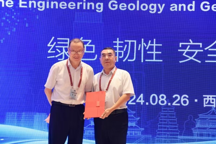 蔡国军教授受邀在本次大会“极端环境工程地质灾害勘察技术与发展动态”分论坛作特邀报告,报告题目为“路基工程废弃物资源化利用关键技术及应用研究”,主要介绍了建筑渣土路堤填料细观表征及内部状态演化分析、再生纤维路基土微观加固机制及宏观力学表征以及路基工程废弃物资源化利用长期服役性能评价,报告得到了与会专家学者的高度好评。