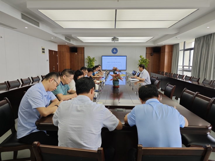 本网讯 为深入学习贯彻党的二十届三中全会精神,加快推进学校聘期制度文件制定工作,9月4日上午,校党委副书记、校长黄显怀在徽风楼21楼第二会议室主持召开聘期制度文件制定推进会。校发规处、财务处、人事处、教务处、科技处、科技成果转化处等部门负责人参加会议。