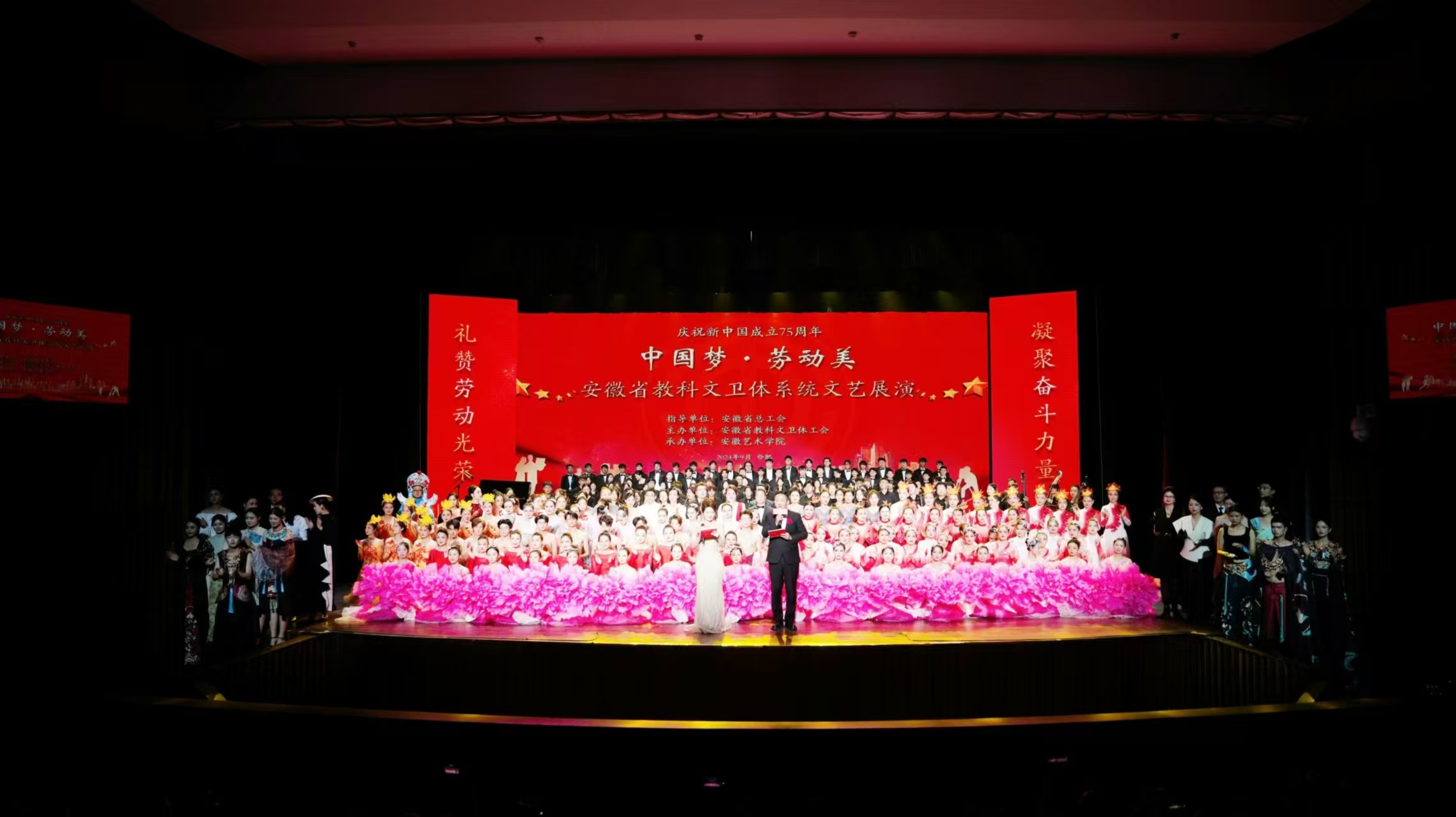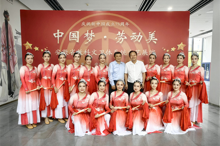 本网讯 近日,“庆祝新中国成立75周年——中国梦·劳动美安徽省教科文卫体系统文艺展演”在安徽艺术学院拉开帷幕。省总工会副主席、党组成员胡少石出席活动并讲话,省教育厅、科技厅、文旅厅、卫健委、体育局和省属高校、医院等单位负责同志参加此次活动。17个高校和附院选送节目参加展演。此次展演由安徽省总工会指导,安徽省教科文卫体工会主办,安徽艺术学院承办。