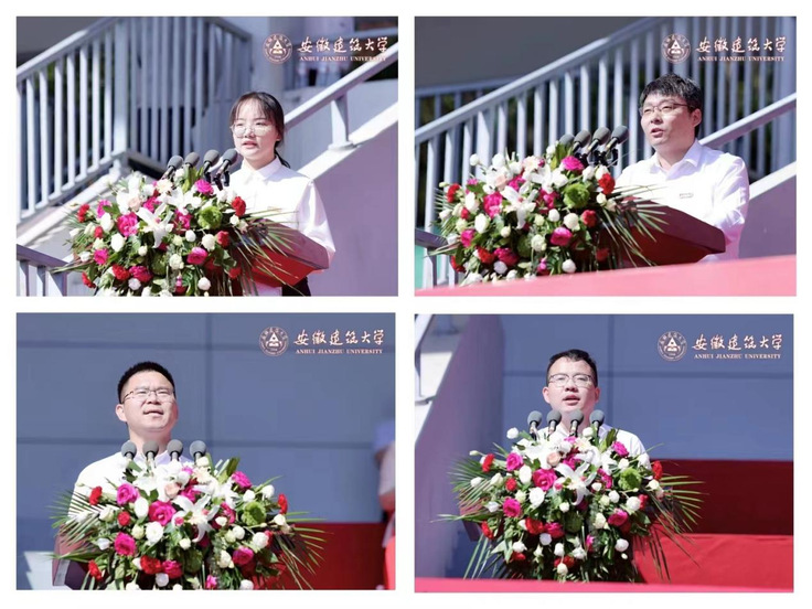 教师代表丁超结合校训精神向新生分享了成长启示,希望大家进德修身,塑造高尚品格;弘毅自强,锤炼钢铁意志;博学多才,拓宽国际视野;善建力行,务求实践创新。谆谆教诲与浓浓爱意激励着建大的新生们。
