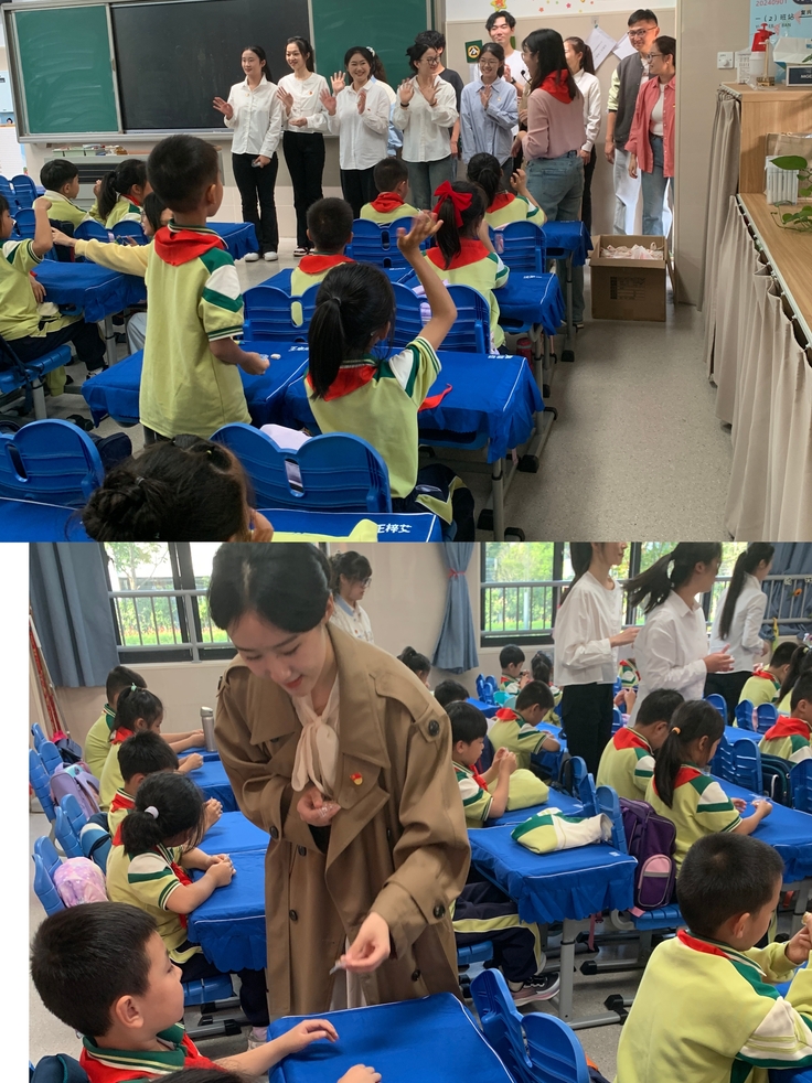 表演结束后,小欧先锋宣讲团来到了上海路小学二(2)班中队与班级同学进行互动,大家围绕着唐诗宋词、九九乘法表、少先队“六知六会”等内容进行相互提问,宣讲团成员为小朋友们送上了精美的学习用品。