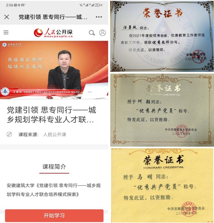 党支部严格落实“三会一课”制度,突出理论学习和政治引领,采用课程思政研讨会、乡村振兴、红色之旅等多种形式,丰富“三会一课”内容、提高组织生活质效,党支部建设与基层教学组织建设“双融合”“双促进”,党建工作和业务工作“双赋能”“双提升”。政治理论学习为党员教师注入了源源不断的育人动力,将学习成果持续转化为立德树人的实际行动,党支部获批校先进基层党组织,多名党员教师获优秀党务工作者,优秀共产党员、优秀教育工作者等荣誉称号。支部书记汪勇政在长三角地区城乡规划专业“大思政课”建设论坛上作主旨发言;探索形成构建党建与学科发展双融双促有效机制,研究成果已发表多篇党建教研论文。